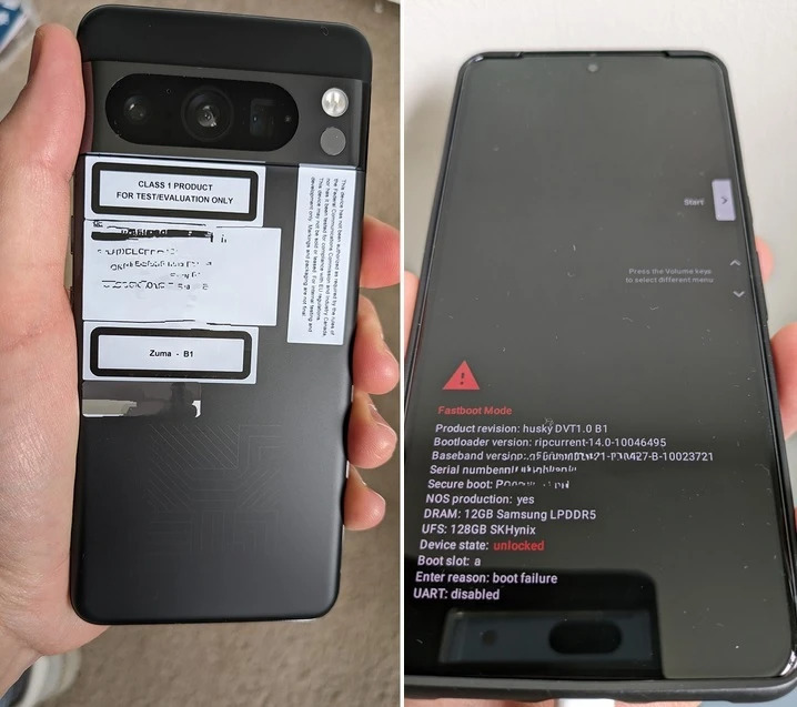Google在產品發表前的保密功夫可能不是那麼精細,因為首批Pixel 8 Pro的實機照片已在Reddit論壇上流傳開來。其中一張照片展示的手機背面貼有”For Test/Evaluation Only”(僅限於測試/評估)的標籤,並可見到名為”Zuma”的代碼。